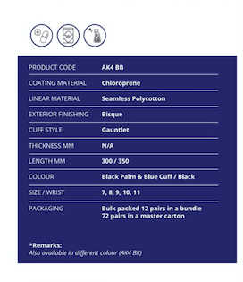 Fitur sarung tangan safety tahan kimia Summitech tipe AK4BB: